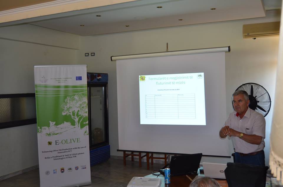 During the first training session of the E-Olive project, Prof. Ass. Enver Isufi, a well-known plant protection specialist, provided valuable insights on using climate data to combat the olive fly pest. Farmers were introduced to techniques that use data from the weather station to predict and prevent pest outbreaks. This data-driven approach allowed farmers to adopt more efficient and environmentally friendly pest control methods, reducing the need for harmful chemicals and ensuring higher yields.